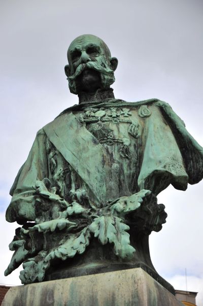 Es wurde 1897 vom ungarischen Bildhauer Georg Zala erschaffen und zeigt den Monarchen in Uniform eines ungarischen Generals der Kavallerie.
